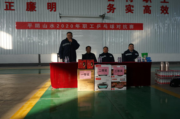 1125日,由平陰山水水泥有限公司主辦的平陰山水2020年職工乒乓球對抗賽在平陰山水塑編公司辦公區舉行。來自平陰山水公司骨料車間、三線項目部等部門及兗州中材建設有限公司平陰分公司,共計30參賽隊員參與了本次賽事。平陰山水水泥有限公司侯書記等出席了開幕式,并致宣布比賽開始。