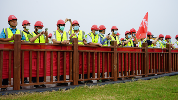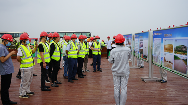 2021年9月18日,由中國(guó)水泥協(xié)會(huì)主辦,中材礦山建設(shè)有限公司、山水集團(tuán)協(xié)辦的第十五屆水泥礦山年會(huì)暨中國(guó)水泥協(xié)會(huì)礦山專業(yè)委員會(huì)第五次代表大會(huì)參會(huì)代表蒞臨兗州中材有限公司平陰分公司青龍山礦區(qū)參觀。中材礦山胡總、兗州中材劉總、平陰山水總經(jīng)理丁宗新、黨委書(shū)記侯福存及相關(guān)領(lǐng)導(dǎo)接待了與會(huì)代表。  參觀團(tuán)先后參觀了平陰山水公司智能化控制室、數(shù)字化礦山控制室,并到礦山現(xiàn)場(chǎng)進(jìn)行實(shí)地參觀。  我方代表結(jié)合現(xiàn)場(chǎng)對(duì)我公司的‘六個(gè)標(biāo)準(zhǔn)化’進(jìn)行了細(xì)致的講解,參觀團(tuán)詳細(xì)了解并觀看了各平臺(tái)的開(kāi)采情況、路王漿道路運(yùn)行情況、噴淋抑塵系統(tǒng)的抑塵效果、預(yù)裂邊坡爆破后效果以及GPS智能卡車調(diào)度系統(tǒng)。  通過(guò)實(shí)地參觀和交流,參會(huì)代表對(duì)平陰公司數(shù)字化礦山+綠色礦山有了更直觀的了解,對(duì)數(shù)字化礦山開(kāi)采的先進(jìn)性、可靠性以及對(duì)綠色礦山的建設(shè)給予了肯定。