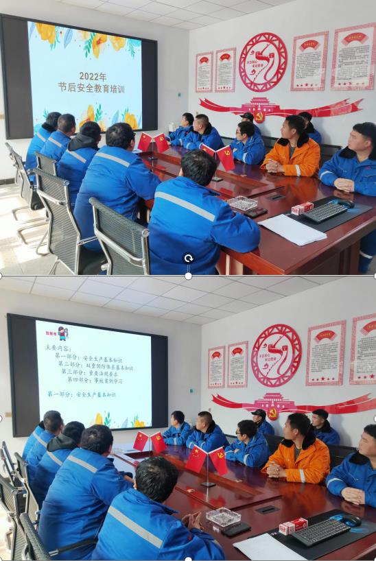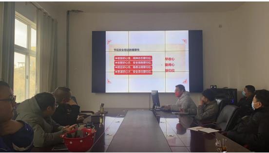 在礦山現場召開到崗一線員工“節后復工收心會”,趕走“節后綜合癥”,調整心態,全身心回歸工作,增強節后安全意識。