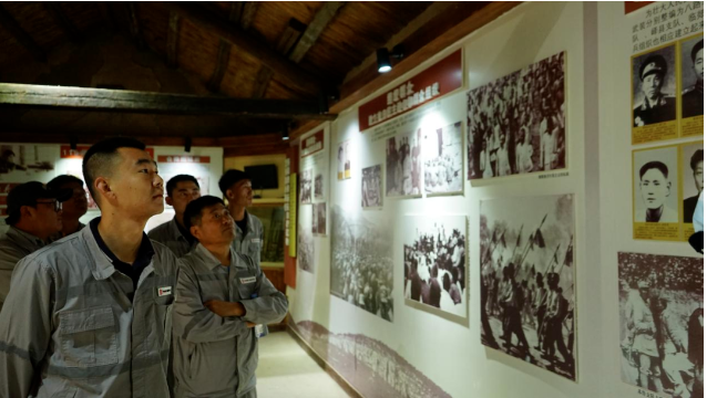 在八路軍115師抱犢崮抗日紀(jì)念園,全體員工依次參觀了八路軍第115師紀(jì)念館、115師政治部、王麓水紀(jì)念館等紅色展館,認(rèn)真研學(xué)抗日戰(zhàn)爭時期八路軍英勇抗日的光輝事跡。一件件破舊而又珍貴的實物,一幅幅發(fā)黃而又寶貴的照片,一場場硝煙彌漫的激戰(zhàn)場景,仿佛將大家?guī)Щ氐搅四莻€激情燃燒、熱血沸騰的戰(zhàn)爭年代,使大家深刻地感受到八路軍不屈不撓的頑強意志和血戰(zhàn)到底的英雄氣概,思想靈魂受到了深刻的革命洗禮。員工們不時駐足觀看,了解抱犢崮山區(qū)八路軍隊伍與山區(qū)人民軍民魚水情深的感人故事,重溫戰(zhàn)火紛飛的崢嶸歲月,展廳內(nèi)陳列的老照片以及戰(zhàn)場上使用的槍支彈藥無不提醒著我們要牢記革命歷史。